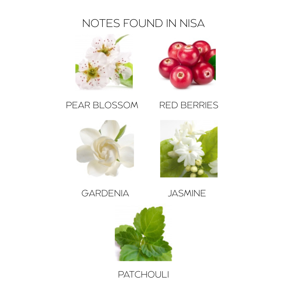 The notes that can be easily identified are pear blossom, red berries, gardenia, jasmine, and patchouli.